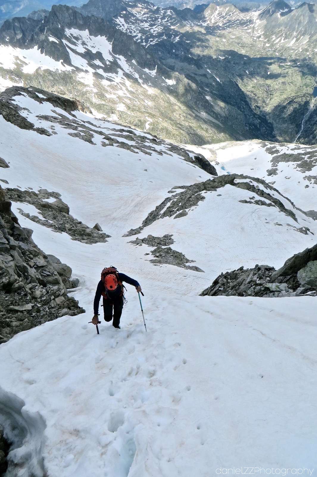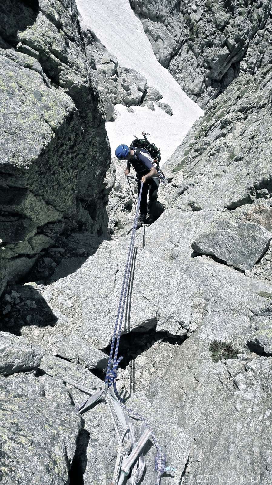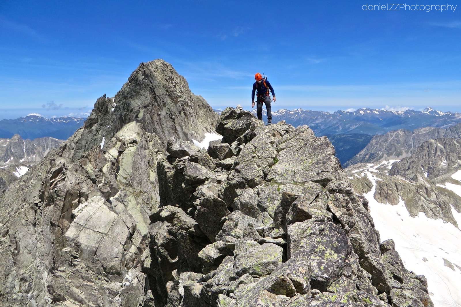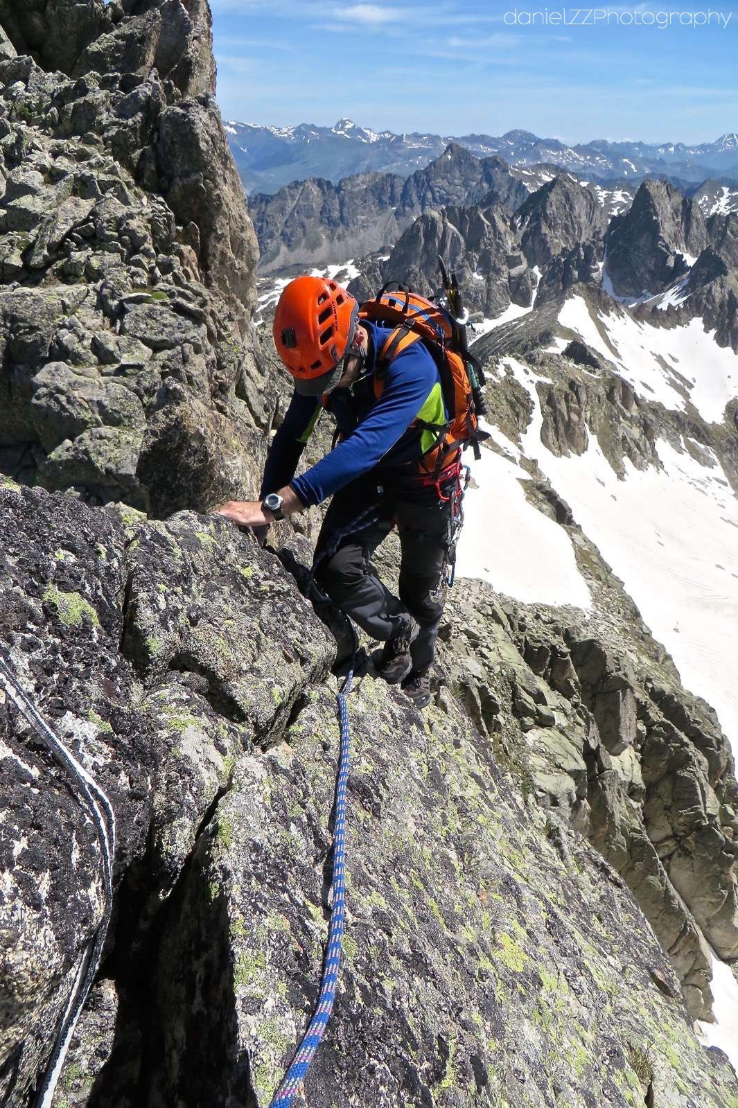 • Desnivel: +1200 mt aproximación. +400/-250 arista. -1.350 descenso.