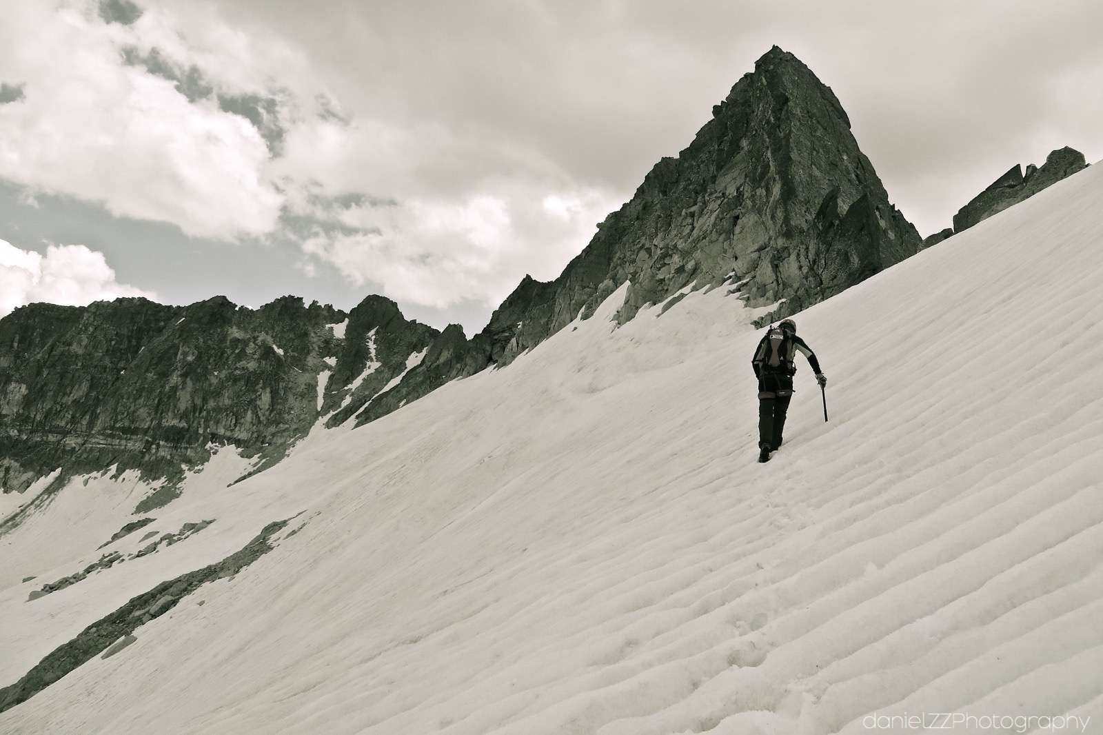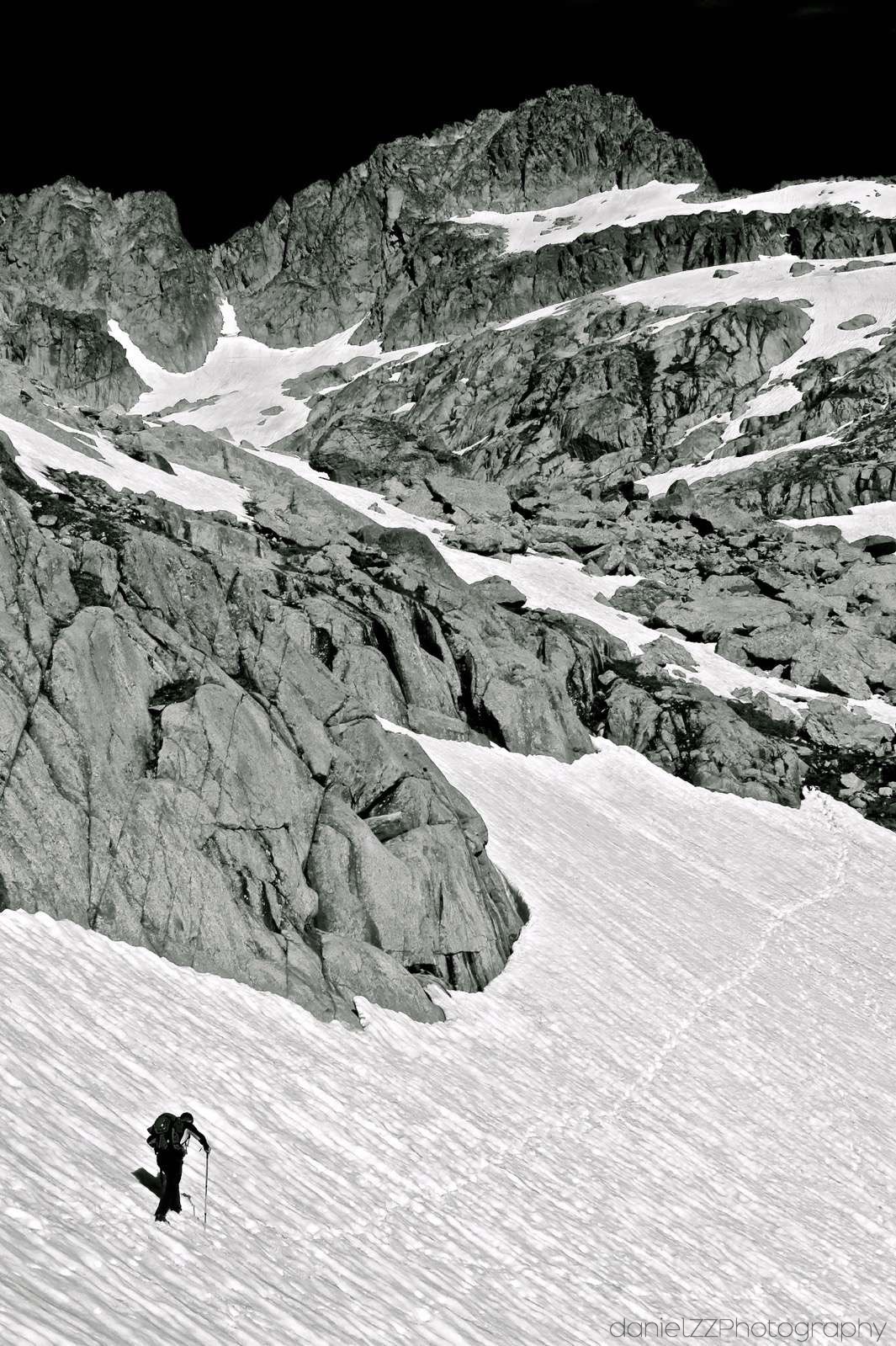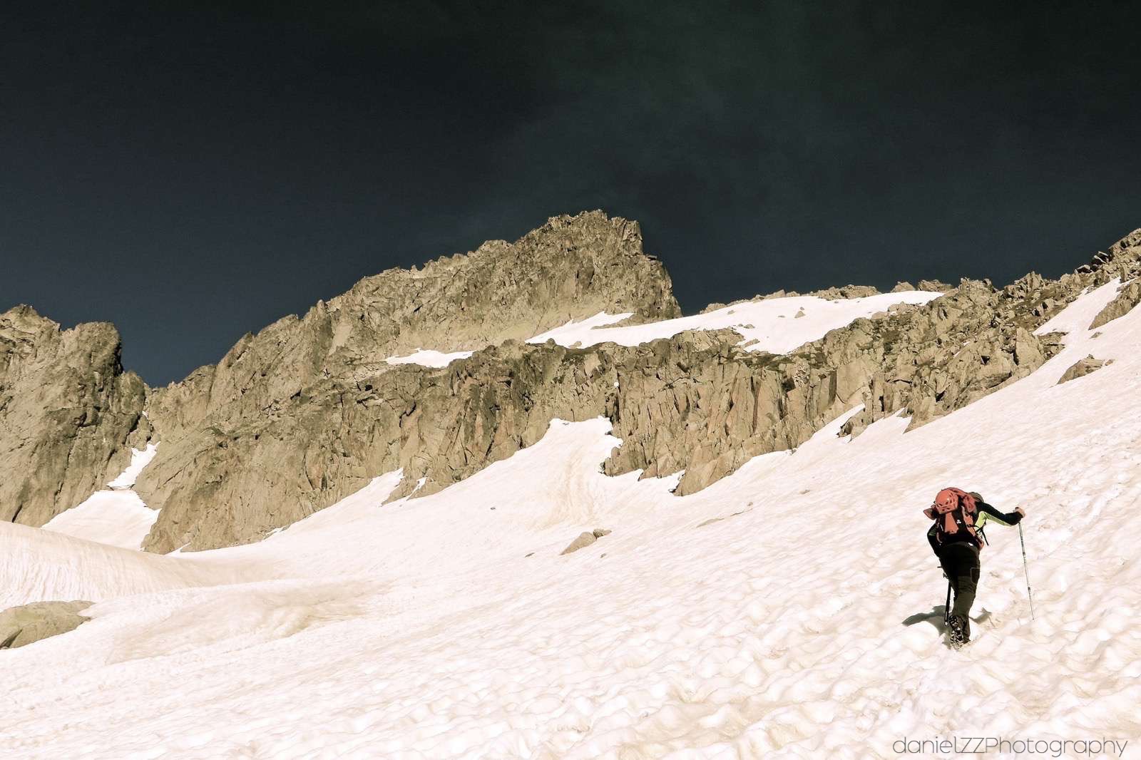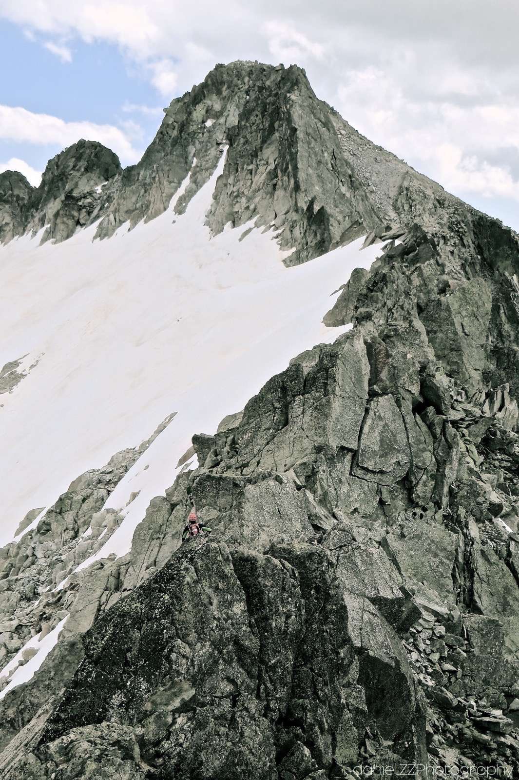 • Desnivel: +1200 mt aproximación. +400/-250 arista. -1.350 descenso.